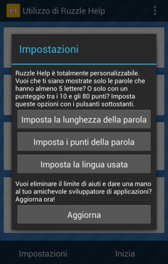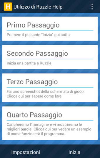 L'uso dell'app è indicato nel chiaro tutorial introduttivo: premi sul pulsante Inizia, avvia una partita a Ruzzle, crea uno screenshot dello schema e il programma ti mostrerà in sovrimpressione (e in sequenza, mano a mano che le copi) tutte le parole ricavabili dal quadro di gioco.